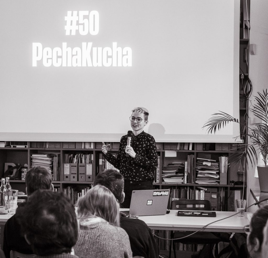 Vor den Vorträgen gibt es eine Begrüßung und kurze Einleitung zum Typostammtisch Berlin durch Luc(as) und Sonja. Flo als Mitgründer kommt nach vorn.Christine Gertsch