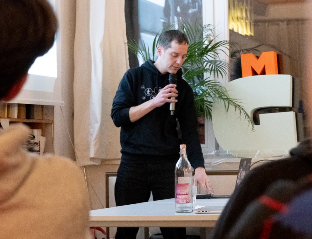 An diesem Donnerstagabend durften wir Besuch aus der Schweiz begrüßen, genauer gesagt von Dafi Kühne aus Zürich! Einige Minuten vor Beginn war der gut bestuhlte Raum im Studio bei LucasFonts noch recht leer, doch plötzlich betraten alle auf einmal den Raum und die Plätze waren in kurzer Zeit belegt. Viele altbekannte Gesichter waren dabei, und es fanden auch einige Besucher·innen zum ersten Mal ihren Weg zum Typostammtisch.